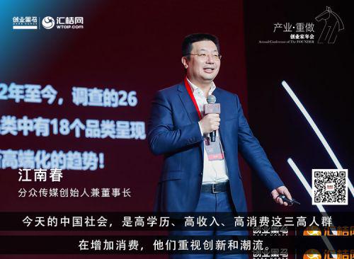创业家&i黑马讯 11月23日消息,由创业家&i黑马主办的第11届创业家年会在京举行,分众传媒创始人江南春出席活动并发表主题演讲《中国消费及传播市场趋势》。