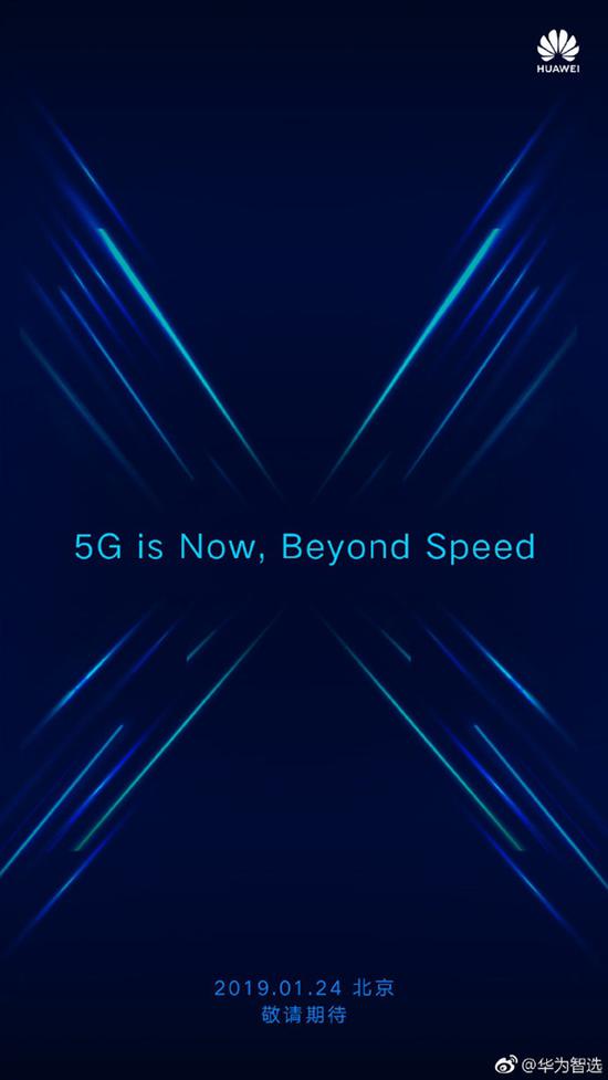随后在1月24日早8:00,华为智选官方微博再次发布预告,并透露:“5G is NOW ,Beyond Speed ! 2019.1.24 北京上午10点 ,给你一个酷炫的X。”